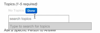 No users in the study found this part of the question posting process intuitive. The first instinct was to separate topics with commas or push enter to select. Participants did not like entering topics one at a time.